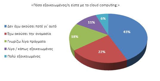 Σύμφωνα με την έρευνα, η εξοικείωση με το cloud computing διαφέρει σημαντικά στην Ενιαία Ευρωπαϊκή Αγορά, με έναν στους 4 χρήστες υπολογιστών στο Ηνωμένο Βασίλειο (28%) και στην Ελλάδα (24%), να καταγράφουν υψηλά επίπεδα εξοικείωσης, σε σύγκριση με έναν στους δέκα χρήστες στην Πολωνία (9%) και τη Γαλλία (10%).
