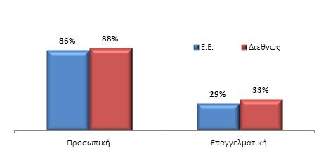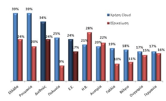Σε όλη την Ευρωπαϊκή Ένωση, 86% των χρηστών cloud, αναφέρουν ότι χρησιμοποιούν τις εφαρμογές cloud για προσωπική χρήση – κυρίως δε, υπηρεσίες που διατίθενται δωρεάν. Μόνο 29% των συμμετεχόντων στην έρευνα αναφέρουν ότι χρησιμοποιούν τις υπηρεσίες cloud για επιχειρηματικούς λόγους, παρουσιάζοντας μια μικρή υστέρηση σε σύγκριση με τους χρήστες διεθνώς, στους οποίους το αντίστοιχο ποσοστό είναι 33%.