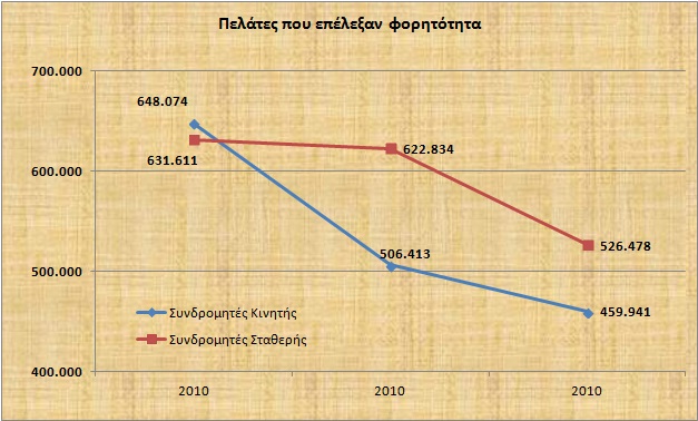 Στο σύνολο της τηλεφωνίας ο αριθμός που μετακινήθηκε σε άλλον πάροχο μειώθηκε πέρσι κατά 12,6% σε σχέση με το 2011, όπου επίσης είχε σημειωθεί μείωση σε σχέση με το 2010 κατά 11,7%.