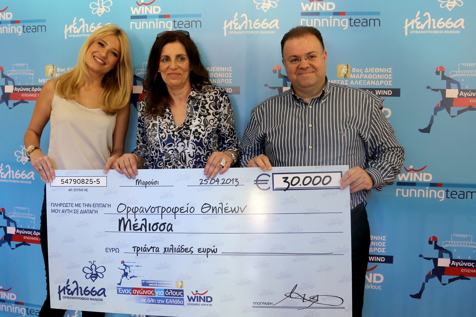 Με μια λιτή, αλλά πλημμυρισμένη με δεκάδες παιδικά χαμόγελα, εκδήλωση στις εγκαταστάσεις του Ορφανοτροφείου Θηλέων Μέλισσα στο Πανόραμα Θεσσαλονίκης, η WIND παρέδωσε την επιταγή με το ποσό των 30.000€ που συγκεντρώθηκαν από την εκστρατεία αλληλεγγύης που πραγματοποίησε μέσω της WIND Running Team, με αφορμή την παρουσία της εταιρείας ως χορηγός στον 8ο Διεθνή Μαραθώνιο Μέγας Αλέξανδρος, στη Θεσσαλονίκη την Κυριακή 21 Απριλίου. Στην εκδήλωση παραβρέθηκε και η Φαίη Σκορδά ως πρέσβειρα της WIND Running Team.
