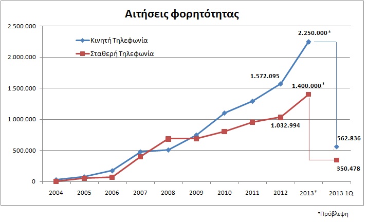 Με βάση τα στοιχεία που συνοδεύουν την προκήρυξη του διαγωνισμού οι αιτήσεις φορητότητας (μπορεί να περιλαμβάνουν περισσότερους από έναν αριθμούς) που υπεβλήθησαν για τα έτη 2004 έως και 2013 (μέχρι 31/3/2013) είναι, συνολικά στην κινητή τηλεφωνία, 3.159.260 και στη σταθερή 3.412.782.