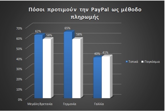 Οι καταναλωτές που αγοράζουν από καταστήματα που ανήκουν σε Έλληνες εμπόρους προτιμούν να κάνουν χρήση της PayPal, με δεδομένο το γεγονός ότι τους προσφέρει ασφάλεια και προστασία στις συναλλαγές τους. Αυτό σημαίνει πως οι αγοραστές μπορούν να αιτηθούν την επιστροφή χρημάτων σε περίπτωση μη παραλαβής του προϊόντος που αγόρασαν ή επειδή το είδος δεν ταιριάζει με την περιγραφή που παρείχε ο πωλητής. Σύμφωνα με την έρευνα IpsosVantis4 που έλαβε χώρα σε πολλές ευρωπαϊκές αγορές, οι αγοραστές από το Ηνωμένο Βασίλειο (62% σε τοπικό και 58% σε διεθνές επίπεδο), την Γερμανία (65% σε τοπικό και 58% σε διεθνές επίπεδο) και την Γαλλία (40%) επιλέγουν την λύση της PayPal και την προτιμούν πάντοτε, όταν αυτή παρέχεται ως ένας από τους τρόπους πληρωμής.