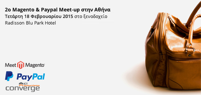 H PayPal και η Converge συνεργάζονται για τη διοργάνωση του 2ου Magento & PayPal Meet-up στην Αθήνα, την Τετάρτη 18 Φεβρουαρίου 2015, στο ξενοδοχείο Radisson Blu Park.