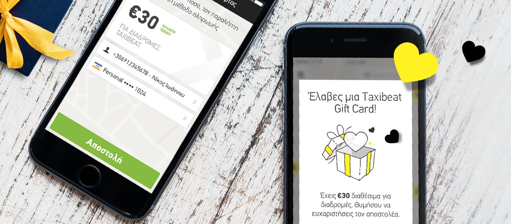 Το Taxibeat, η δωρεάν εφαρμογή για εύρεση ταξί, δίνει τώρα τη δυνατότητα στους χρήστες να στέλνουν ανά πάσα στιγμή χρήματα για δωρεάν διαδρομές στα αγαπημένα τους πρόσωπα, με τις Taxibeat Gift Cards.