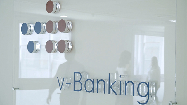 Η καινοτόμος υπηρεσία v–Banking, μοναδική σε ευρωπαϊκό επίπεδο, εκσυγχρονίζει τις τραπεζικές συναλλαγές, δίνοντας προτεραιότητα στον επιχειρηματία και την επιχείρηση. Οι πελάτες της Eurobank έχουν πλέον τη δυνατότητα προσωποποιημένης εξυπηρέτησης σε ασφαλές ψηφιακό περιβάλλον, από εξειδικευμένους συμβούλους, μέσω video κλήσης υψηλής ευκρίνειας, χωρίς να χρειάζεται να επισκεφτούν κάποιο κατάστημα της Τράπεζας. Έτσι, καλύπτονται οι ανάγκες της επιχείρησης, ενώ μειώνονται οι λειτουργικές δαπάνες και ο χρόνος εκτέλεσης καθημερινών εργασιών. Μέσω της πλατφόρμας ηλεκτρονικής τραπεζικής παρέχονται: άμεση εξυπηρέτηση χωρίς αναμονή, ανταλλαγή και επεξεργασία εγγράφων σε πραγματικό χρόνο, διαδραστικό ημερολόγιο για προγραμματισμό συναντήσεων, συμβουλευτικές υπηρεσίες και υποστήριξη, περιήγηση και διαδραστικές παρουσιάσεις χρηματοοικονομικών τραπεζικών προϊόντων και εξατομικευμένη επικοινωνία μέσω chat και e-mail.