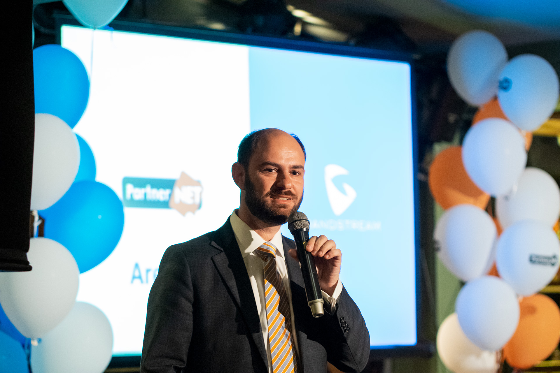 Η βραδιά ξεκίνησε με το καλωσόρισμα του Angelo Gentili, ιδρυτή της PartnerNET, ενώ τίμησε τη σκηνή με την εγκάρδια ομιλία του ο υπεύθυνος EMEA της Grandstream, Tomer Hen.