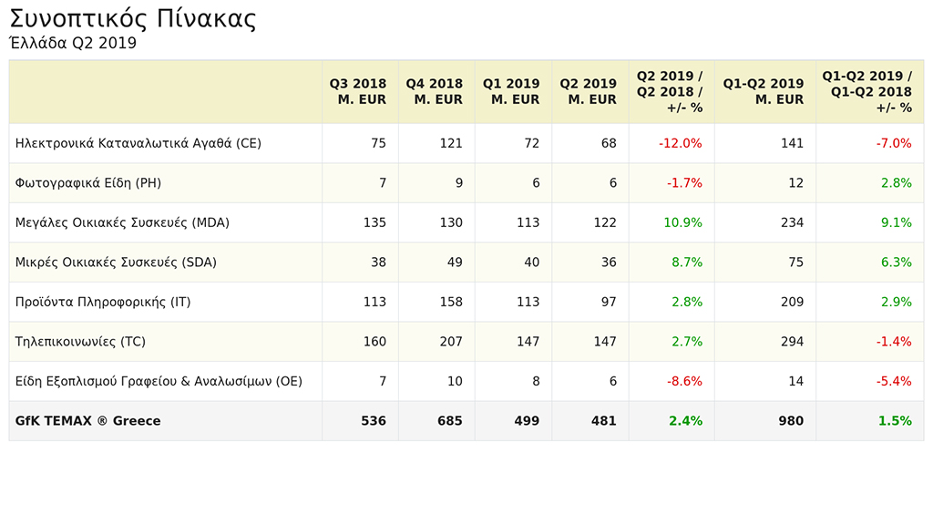 GFK TEMAX: η αγορά λευκών και μαύρων συσκευών το 2ο τρίμηνο 2019