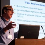 Ακολούθησε ο Δρ. Γιάννης Χαραλαμπίδης, Αναπληρωτής Καθηγητής του Τμήματος Μηχανικών Πληροφοριακών και Επικοινωνιακών Συστημάτων του Πανεπιστημίου Αιγαίου και Επικεφαλής του Κέντρου Έρευνας για την Ψηφιακή Διακυβέρνηση. Πρόκειται για τον Έλληνα που βρίσκεται στη λίστα των 100 ανθρώπων με τη μεγαλύτερη επιρροή στην παγκόσμια Ψηφιακή Διακυβέρνηση. Ο Δρ. Χαραλαμπίδης μίλησε για την ανάγκη και τη σημασία της Ψηφιακής Διακυβέρνησης καταλήγοντας στους πέντε στόχους της: «Ένα κράτος χωρίς χαρτί, συνδεδεμένο και προδραστικό. Ένα κράτος έξυπνο, το οποίο θα παρέχει υπηρεσίες σε κεντρικό και τοπικό επίπεδο που ενσωματώνουν τεχνολογίες αιχμής. Ένα κράτος ανοιχτό και αξιόπιστο, που συλλέγει, αξιοποιεί και διαθέτει όλα τα δεδομένα του ανοιχτά. Ένα κράτος που μπορεί να αλλάζει και να καινοτομεί. Τέλος, ένα κράτος που σε καλύπτει και σε έλκει να συνεργαστείς, προάγοντας τις ανοιχτές συνεργατικές δράσεις, με την εμπλοκή πολιτών και επιχειρήσεων από τα αρχικά κιόλας στάδια».