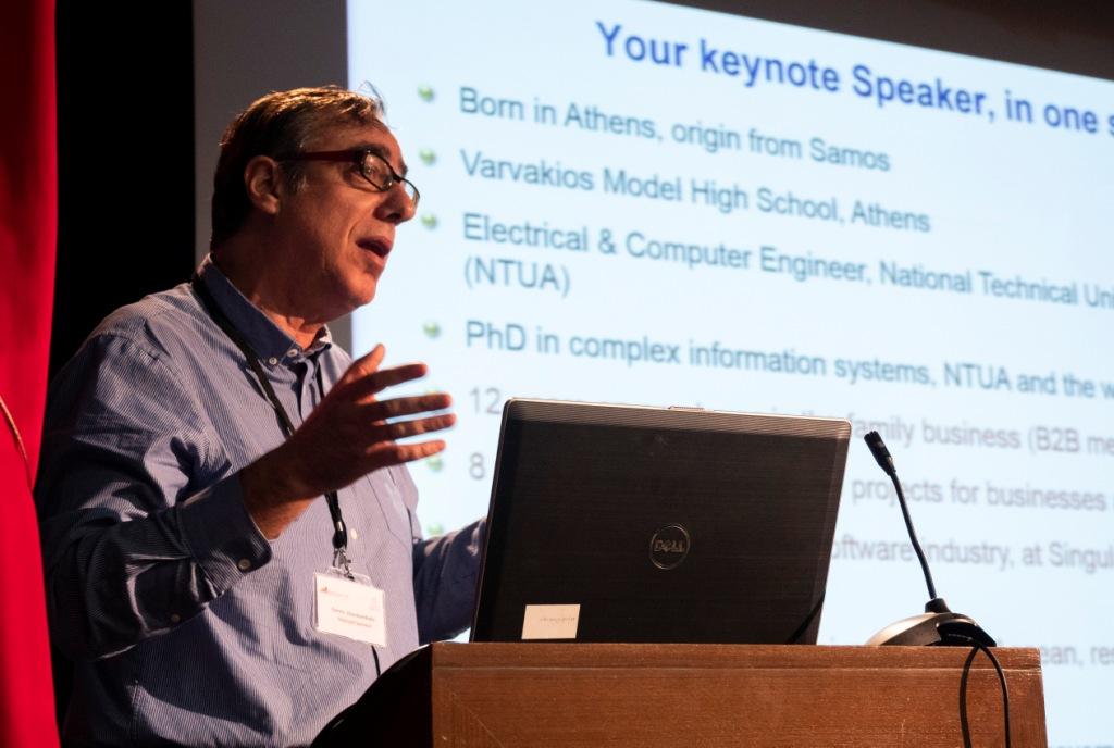 Η πρώτη ημέρα εισηγήσεων ολοκληρώθηκε με την παρουσίαση του Δρ. Μίλτου Πετρίδη, Επικεφαλής του Τμήματος Πληροφορικής στο Πανεπιστήμιο Middlesex στο Ηνωμένο Βασίλειο. Ο Δρ. Πετρίδης στην άκρως ενδιαφέρουσα εισήγησή του πραγματοποίησε μία περίληψη της Τεχνητής Νοημοσύνης και της Μηχανικής Μάθησης, μίλησε για τον καίριο ρόλο των “Big Data” αλλά και τις προκλήσεις αυτών, παρουσίασε πραγματικά case studies και τα συμπεράσματα που εξήχθησαν από αυτά και τέλος αναφέρθηκε στους ηθικούς προβληματισμούς που εγείρει η ανάπτυξή της Τεχνητής Νοημοσύνης για να καταλήξει στο ότι «δε θέλουμε η Τεχνητή Νοημοσύνη να αντικαταστήσει τους ανθρώπους. Αυτό που χρειαζόμαστε είναι την Ανθρωποκεντρική Τεχνητή Νοημοσύνη, η οποία θα περιλαμβάνει τις τεχνικές, αλλά και τις κοινωνικές και δεοντολογικές πτυχές» , τονίζοντας την ανάγκη να μπουν κανόνες στην ανάπτυξή της με γνώμονα το γενικό καλό και τον σεβασμό στη διαφορετικότητα.