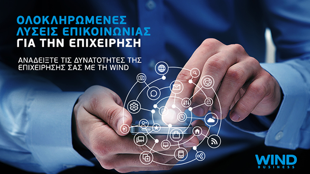 Με επίκεντρο την επιχείρηση και τους ανθρώπους της, η WIND κατανοεί τις απαιτήσεις της εποχής για αδιάλειπτη επικοινωνία και προφέρει απόλυτη ελευθερία στη χρήση Internet (Data) και Φωνής (Ομιλία). Δημιουργεί τις προϋποθέσεις για το ψηφιακό γραφείο που λειτουργεί από παντού, είτε υπάρχει σύνδεση Wi-Fi είτε όχι, γιατί η επιχείρηση πρέπει να εξυπηρετεί κάθε στιγμή τους πελάτες της. Στηρίζει τον Έλληνα επαγγελματία και του προσφέρει συνδεσιμότητα χωρίς όρια, κάτι που επιτάσσει η νέα ψηφιακή πραγματικότητα της τηλεργασίας και όλων των online διαδικασιών.
