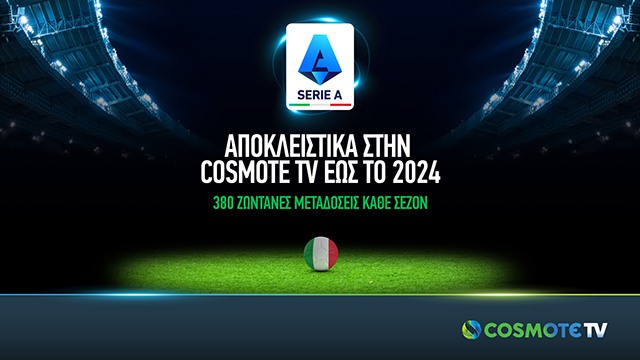 Η Lega Serie A έρχεται από την ερχόμενη σεζόν στην Cosmote TV. Όλη η δράση από το πρωτάθλημα των πρωταθλητών Ευρώπης, θα μεταδίδεται αποκλειστικά από τα κανάλια Cosmote SPORT έως τη σεζόν 2023-24.