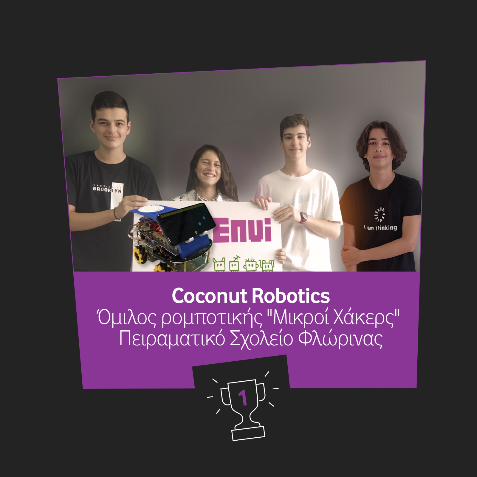 Συγκεκριμένα, η ομάδα “Coconut Robotics”, αποτελούμενη από τους μαθητές Θεόφιλο Μαυρόπουλο, Δημήτρη Μπάλκο, Ασπασία Ντόβα και Αχιλλέα Παπαθανασίου – υπό την επίβλεψη του καθηγητή τους Γιάννη Αρβανιτάκη – κατασκεύασαν την ‘’Envi’’, ένα ρομπότ τεχνητής νοημοσύνης, που βοηθά στον έλεγχο συνθηκών που μπορούν να επηρεάσουν αρνητικά την ποιότητα ζωής μας.