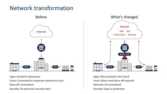 Τα τελευταία 5 χρόνια έχει σημειωθεί μεγάλη αύξηση της κίνησης προς το διαδίκτυο, με ποσοστό αρκετές φορές υψηλότερο από αυτό της εσωτερικής κίνησης. Οι οργανισμοί συνεχίζουν να υιοθετούν εφαρμογές και χώρο αποθήκευσης στο cloud με αποτέλεσμα να το επιφορτίζουν με μεγαλύτερο φόρτο εργασίας. Το backhauling όλης αυτής της κίνησης μέσω ακριβών γραμμών MPLS και VPN δεν έχει πλέον νόημα. Με την παλιά προσέγγιση δρομολογείται όλη η κίνηση προς το internet μέσω της ενιαίας στοίβας συσκευών ασφαλείας από ένα κεντρικό site. Αυτό δημιουργεί όμως πολλές φορές προβλήματα στην απόδοση του δικτύου, επηρεάζοντας την ποιότητα εμπειρίας των χρηστών και προκαλώντας θέματα στην υιοθέτηση SaaS λύσεων σε πολλές επιχειρήσεις. Όλο και περισσότερες εταιρείες λοιπόν κινούνται προς την λογική της άμεσης πρόσβασης στο διαδίκτυο (direct internet access), μειώνοντας έτσι και τα λειτουργικά τους κόστη οφειλόμενα στις ακριβές γραμμές παρόχων, γεγονός όμως που τους εκθέτει περισσότερο σε απειλές επειδή παρακάμπτεται η παραδοσιακή προστασία ασφάλειας.