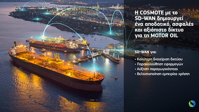 Την πρωτοποριακή, ολοκληρωμένη λύση SD-WAN παρέχει η Cosmote στην Motor Oil αναβαθμίζοντας το τηλεπικοινωνιακό της δίκτυο, ως προς την αποδοτικότητα, την ασφάλεια και την αξιοπιστία του. Το SD-WAN σε συνδυασμό με τις υπηρεσίες συνδεσιμότητας (Connectivity) και τις υψηλών προδιαγραφών ICT λύσεις που διαθέτει η Cosmote, συμβάλλει καθοριστικά στον ψηφιακό μετασχηματισμό του Ομίλου Motor Oil.