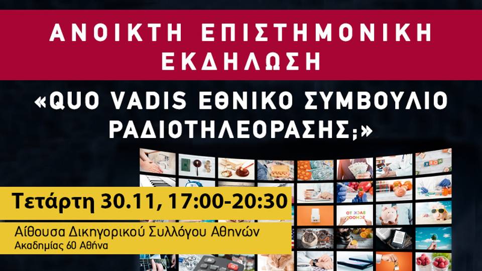 Kαθώς συμπληρώνονται 33 χρόνια λειτουργίας του Εθνικού Συμβουλίου Ραδιοτηλεόρασης, μιας από τις πιο σημαντικές ανεξάρτητες αρχές της χώρας, το ΚΕΣΔ οργανώνει εκδήλωση προβληματισμού αναζητώντας απαντήσεις στα εξής ερωτήματα: