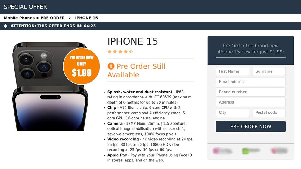 Οι απατεώνες δελεάζουν τους χρήστες με το πρόσχημα να αγοράσουν το iPhone 15 πριν από την επίσημη κυκλοφορία του. Αυτή η μέθοδος αξιοποιεί την προθυμία των χρηστών να είναι μεταξύ των πρώτων που θα κατέχουν την πιο εξελιγμένη συσκευή της Apple. Έτσι, οι απατεώνες ισχυρίζονται ότι μπορούν να παρέχουν iPhone πριν από την κυκλοφορία τους και υπόσχονται στους χρήστες την ευκαιρία να τα αποκτήσουν, συχνά και σε προνομιακή τιμή. Για να εξασφαλίσουν την «αποκλειστική» αγορά τους, τα θύματα υποχρεούνται να καταβάλουν προκαταβολή ή να αποκαλύψουν οικονομικά τους στοιχεία. Επιπλέον, ζητείται από τους χρήστες να παρέχουν προσωπικά στοιχεία αναγνώρισης, όπως το όνομα, η διεύθυνση και ο αριθμός τηλεφώνου τους. Μετά την υποβολή της πληρωμής, οι απατεώνες εξαφανίζονται, αφήνοντας τα θύματα χωρίς το υποσχόμενο iPhone και έχοντας κλέψει τα χρήματά τους. Πέρα από τους οικονομικούς κινδύνους, αυτή η απάτη εγείρει επίσης σημαντικές ανησυχίες για την προστασία της ιδιωτικής ζωής, καθώς τα παραβιασμένα δεδομένα ενδέχεται να πωληθούν στο Dark Market.