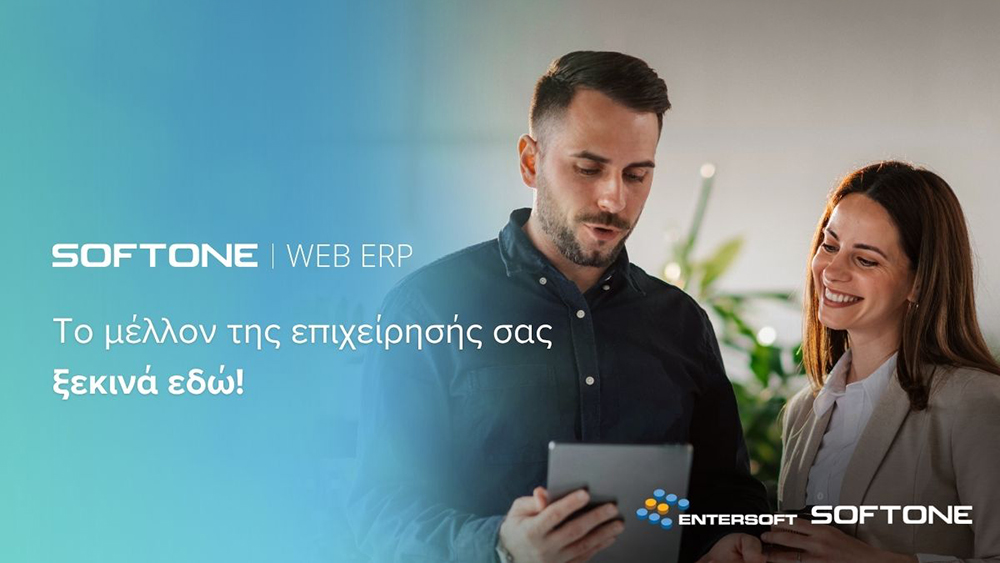 Η Entersoft-SOFTONE ανακοινώνει την έναρξη διάθεσης της νέας πρωτοποριακής λύσης εμπορικής και οικονομικής διαχείρισης SOFTONE WEB ERP. Ενσωματώνοντας την ισχυρή τεχνογνωσία, πρωτοποριακές δυνατότητες AI, καθώς και την εμπειρία λειτουργίας δεκάδων χιλιάδων ERP εγκαταστάσεων στο Cloud, η native web λύση του κορυφαίου παρόχου επαναπροσδιορίζει τη λειτουργία των επιχειρήσεων της αγοράς, καθιστώντας την απολύτως εφικτή από οπουδήποτε, χωρίς κανέναν περιορισμό απλά και μόνο με τη χρήση ενός web browser.