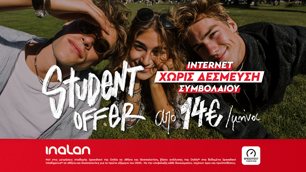Η φοιτητική ζωή χρειάζεται γρήγορο και αξιόπιστο ίντερνετ. Τα φοιτητικά πακέτα της INALAN προσφέρουν υπερυψηλές ταχύτητες, δωρεάν τέλη ενεργοποίησης και καμία δέσμευση συμβολαίου, ώστε να απολαμβάνεις απεριόριστες δυνατότητες, χωρίς επιπλέον κόστη.