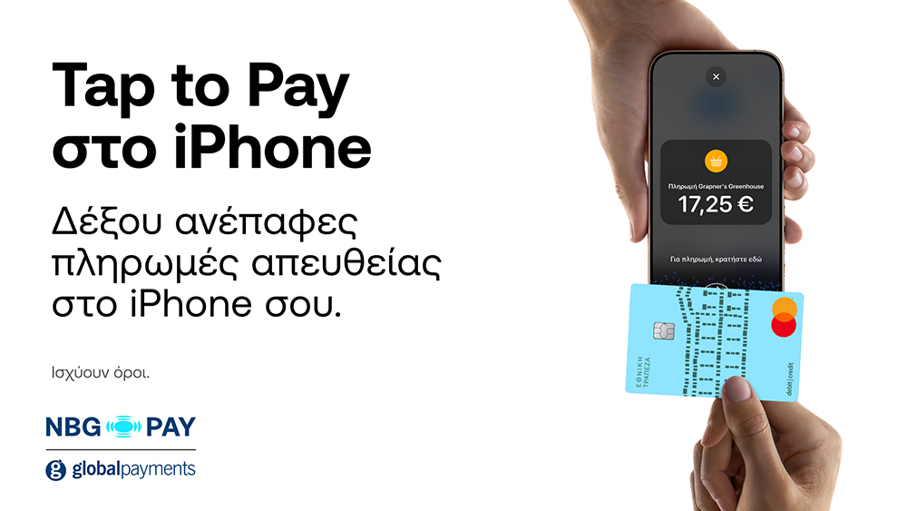 Η NBG Pay, κοινοπραξία της Global Payments και της Εθνικής Τράπεζας της Ελλάδος (ΕΤΕ), δίνει πλέον τη δυνατότητα στις επιχειρήσεις στην Ελλάδα να αποδέχονται ανέπαφες πληρωμές μέσω Tap to Pay στο iPhone, αξιοποιώντας τη λύση NBG Pay tom.