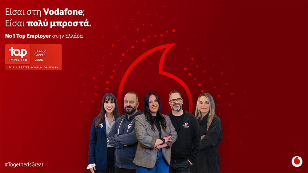 Την 1η θέση στην Ελλάδα ως κορυφαίος εργοδότης κατέκτησε η Vodafone από τον διεθνώς αναγνωρισμένο οργανισμό Top Employers Institute, για τρίτη συνεχή χρονιά, ενώ για όγδοη χρονιά έλαβε την πιστοποίηση Top Employer. Η πιστοποίηση επιβεβαιώνει τη σταθερή δέσμευση της εταιρείας στην αριστεία των πρακτικών διαχείρισης ανθρώπινου δυναμικού, μέσα από μια ολοκληρωμένη αξιολόγηση που καλύπτει το σύνολο της στρατηγικής, από τη συμπερίληψη και την ευεξία των εργαζομένων, έως την ανάπτυξη ταλέντων.
