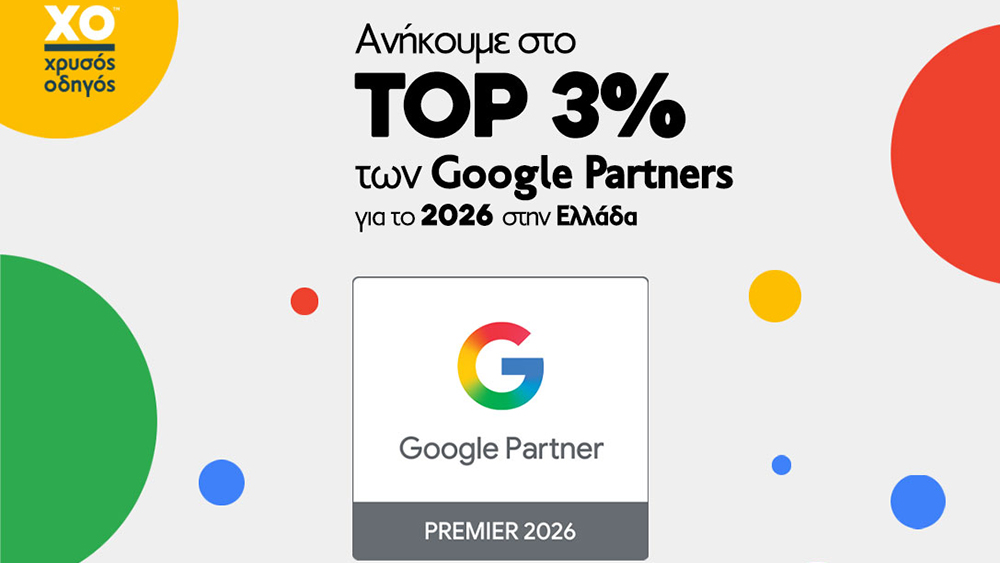 Ο Χρυσός Οδηγός ανακοινώνει ότι διακρίθηκε ως Google Premier Partner για το 2026, επιβεβαιώνοντας τη σταθερή του προσήλωση στην υψηλή απόδοση, στην τεχνογνωσία στη διαχείριση καμπανιών Google Ads και στη διαρκή επένδυση στην ανάπτυξη δεξιοτήτων της ομάδας του.